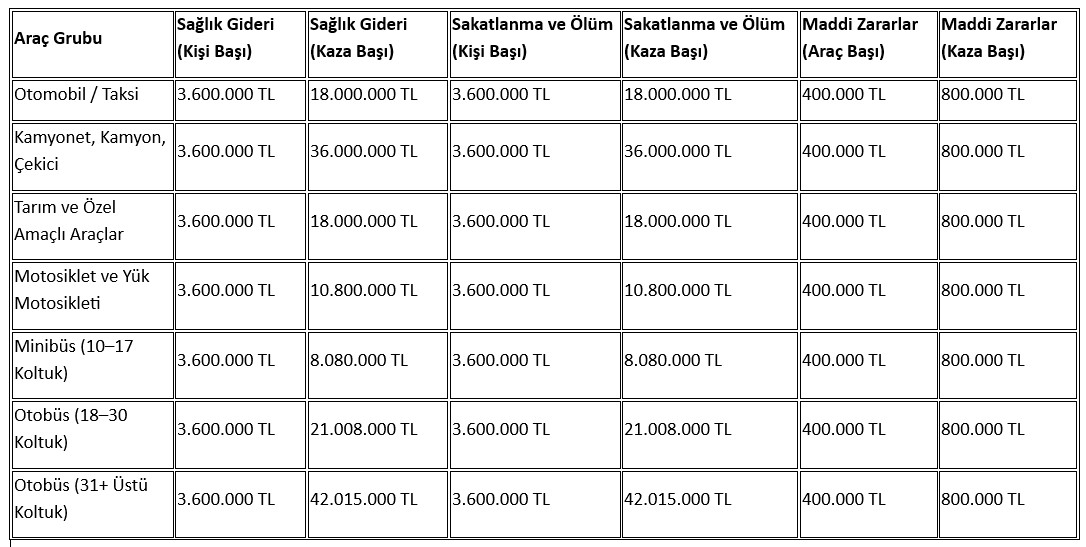 - Zorunlu Trafik Sigortası tarafından ödenen teminat limitlerini aşan